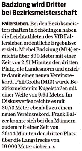 VfB Fallersleben Leichtathletik - Fotos und Presseberichte